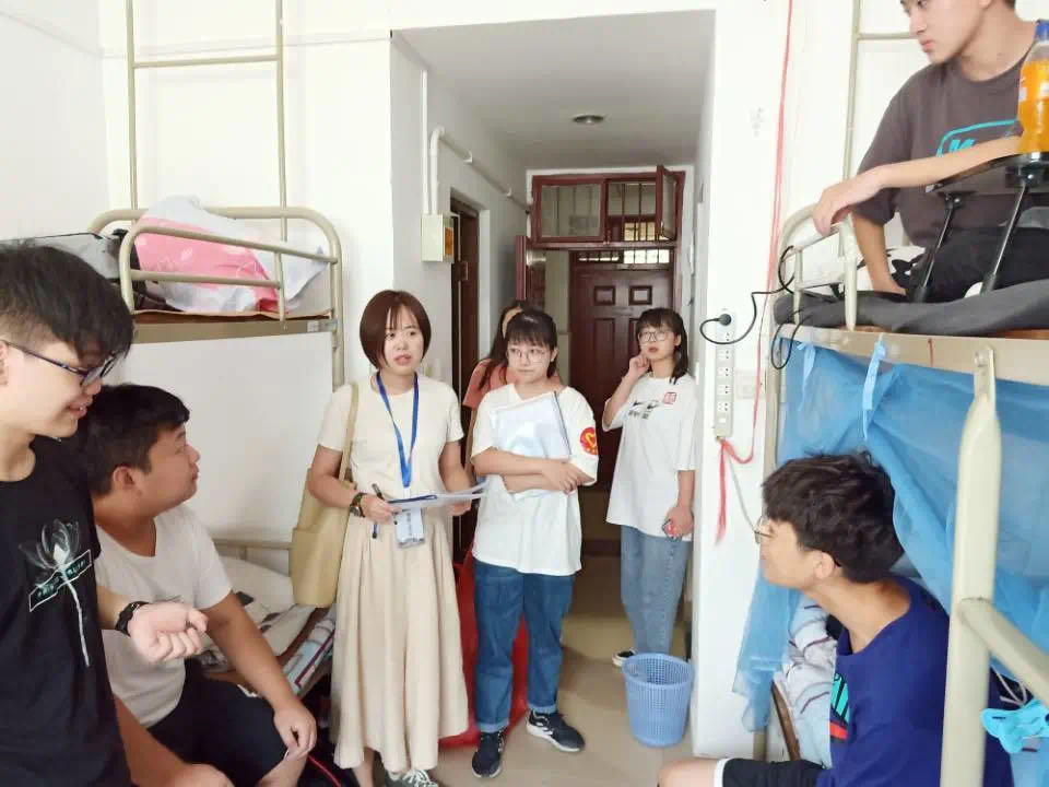 走访宿舍期间,老师们与新生亲切交流,询问同学们的家庭情况、对学校环境的适应情况,对新生们的疑惑问题一一解答。