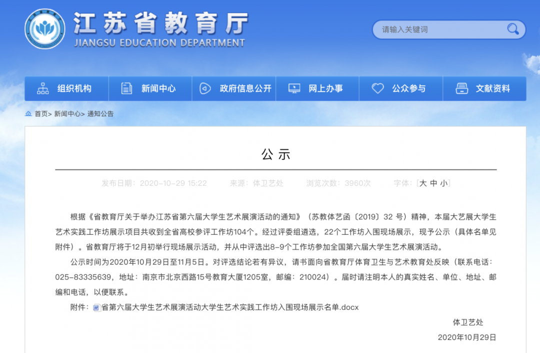 根据《省教育厅关于举办江苏省第六届大学生艺术展演活动的通知》精神,本届共收到全省高校参评工作坊104个。经过评委组遴选,22个工作坊入围现场展示,江苏第二师范学院美术学院“传承红色基因 牢记初心使命——红色文化产品创意实践工作坊”名列其中。