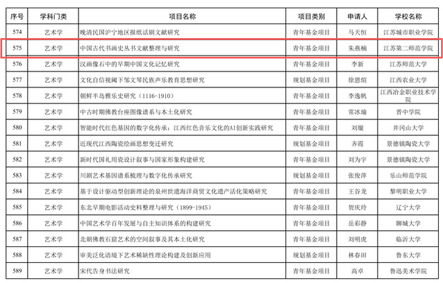 祝贺美术学院朱燕楠老师申报的《中国古代书画史丛书文献整理与研究》成功立项。