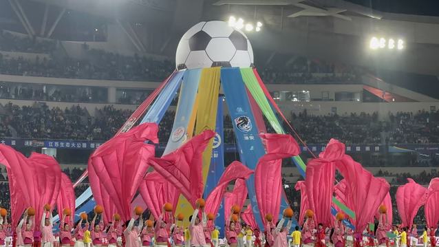 11月1日晚,万众瞩目的“苏超”决赛在南京奥体中心拉开帷幕。场馆灯光璀璨,来自江苏第二师范学院的学子们率先登场,他们以精彩的节目带来开场表演,既展现了当代大学生的青春风采,更以蓬勃的活力点燃了整场赛事的青春氛围。