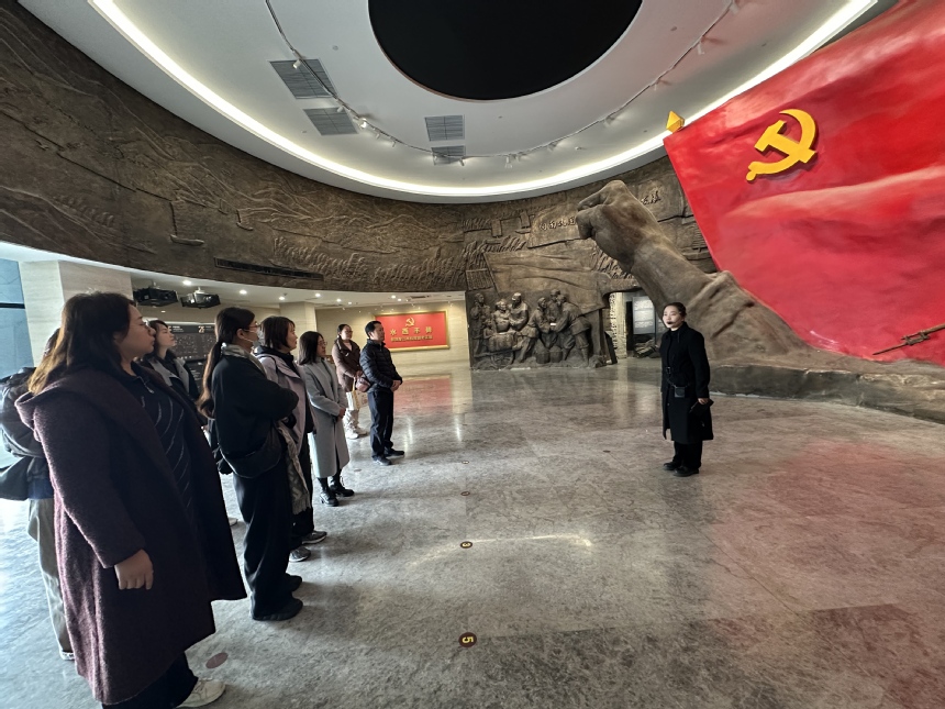 依据教工支部活动计划,为深入学习贯彻习近平新时代中国特色社会主义思想和党的二十大精神,夯实基层党组织建设根基,立足美术学院学科特色,深度融合党建工作与教学、科研、人才培养。以 “丹青铸魂” 凝聚党员教师思想共识,借艺术创作与实践传承红色基因,引导教师筑牢师德之基,激发奉献热忱与建功担当,培育兼具人文情怀和社会担当的艺术设计先锋力量。2025年12月10日上午教工支部、学生支部部分党员赴新四军江南指挥部纪念馆开展主题党日活动。通过参观和讲解员的讲述,让我们了解到抗日战争的那段历史,陈毅、粟裕等革命先辈坚决执行党中央的正确指示,并从苏南抗日斗争的实际出发,创造性地运用党的三大法宝,创建、巩固和发展了以水西村为指挥中心的苏南抗日根据地,奠定了华中抗日根据地的基础,在我党党史、我军军史上谱写了辉煌的篇章。除了听讲解,我们还观看了微党课,“陈毅家风”、“铁军铁纪”、“初心与使命”、“抗战精神永放光芒”。